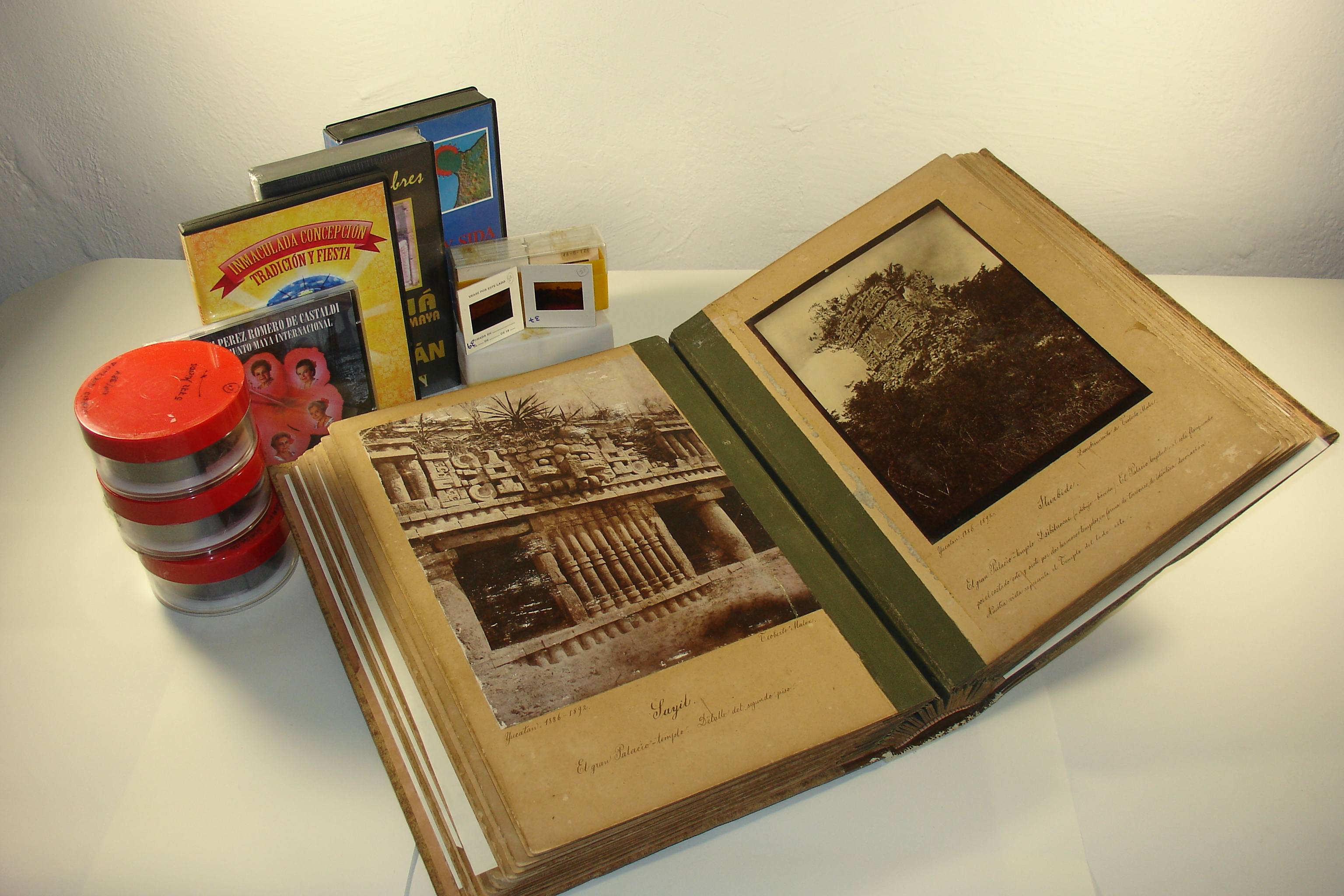 Las fotografías preservadas abarcan un período de 1886 a 2002. Su número triplica el acervo patrimonial fotográfico registrado para la zona sur del país. Entre las piezas más valiosas se encuentran tres álbumes de fotografías del arqueólogo Teoberto Maler, con 94 impresiones de colodión húmedo tomadas en más de 90 sitios arqueológicos mayas entre 1886 y 1892. Cabe destacar que esta es una de las tres colecciones del fotógrafo austriaco que existen en México.